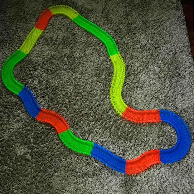• Mekana i Izdržljiva Plastika: Izrađena je od visokokvalitetne, mekane plastike koja je savitljiva i izuzetno otporna. Ne brinite ako je slučajno nagazite – staza se neće uništiti!