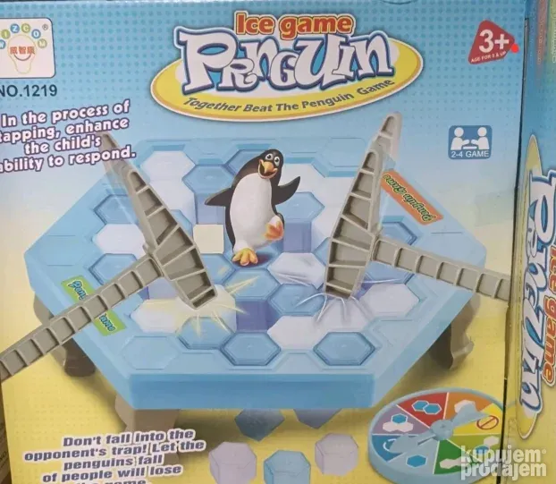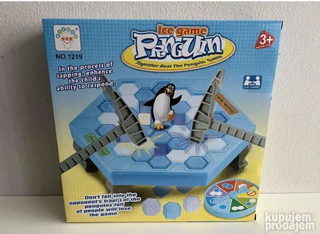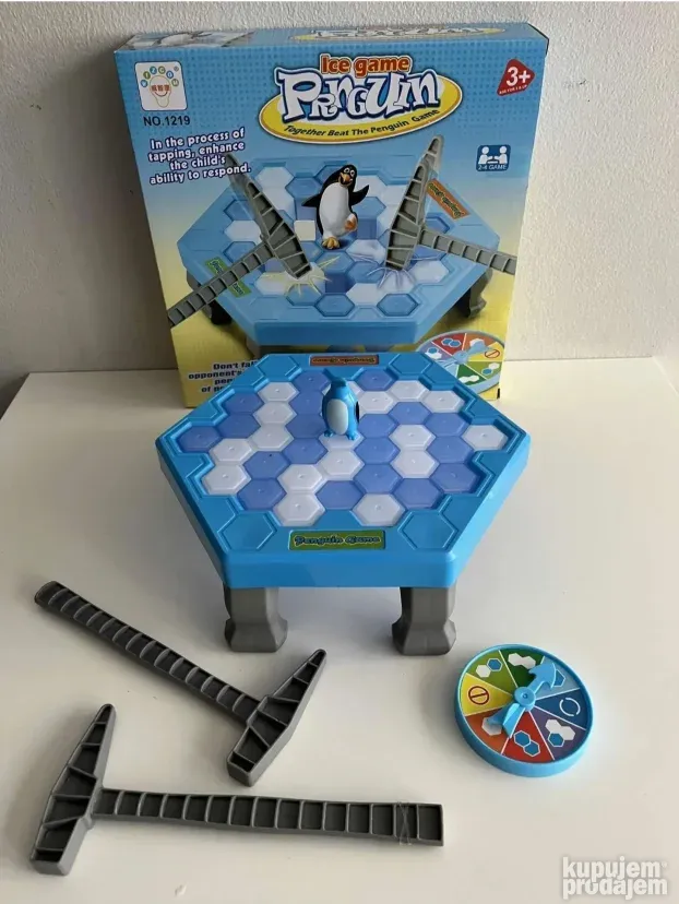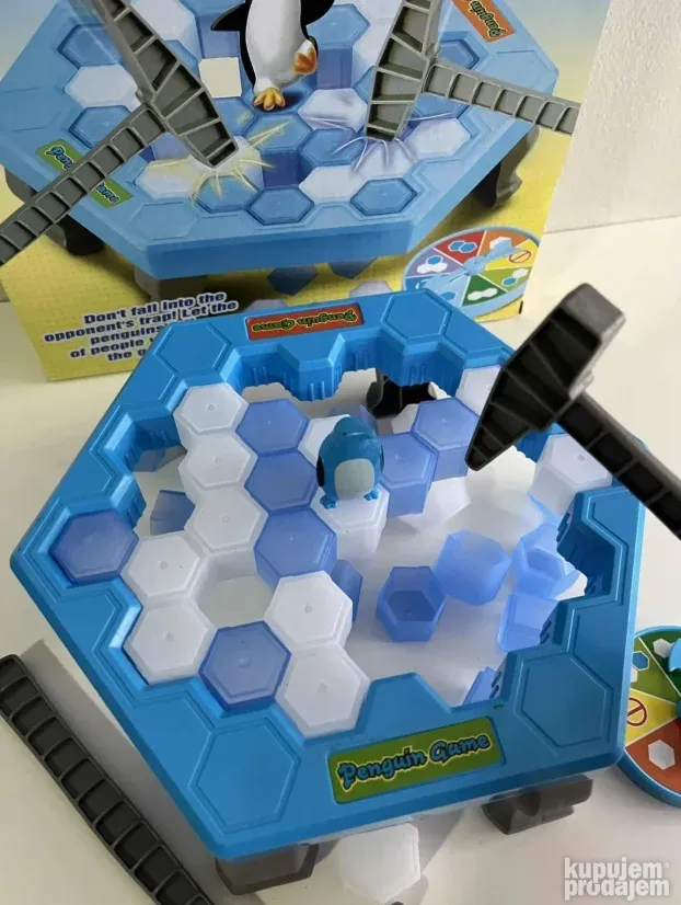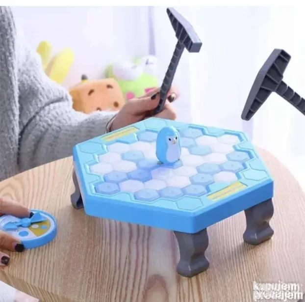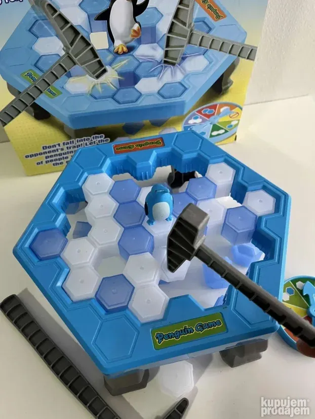 Interaktivna igra za decu koja garantuje sate zabave! Cilj je da izbijate kockice sa platforme, ali pazite da ne srušite pingvina. Set uključuje 19 plavih i 19 belih kockica, platformu sa nogicama, dva čekića, pokazivač i pingvina.