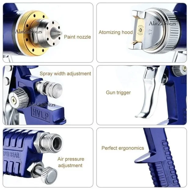 - ✔ HVLP (High Volume Low Pressure) tehnologija za efikasno nanošenje boje uz manji pritisak