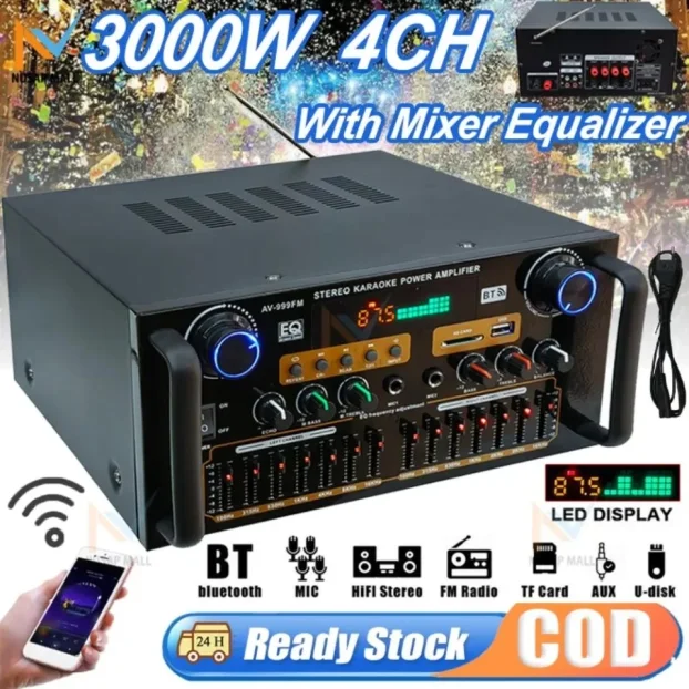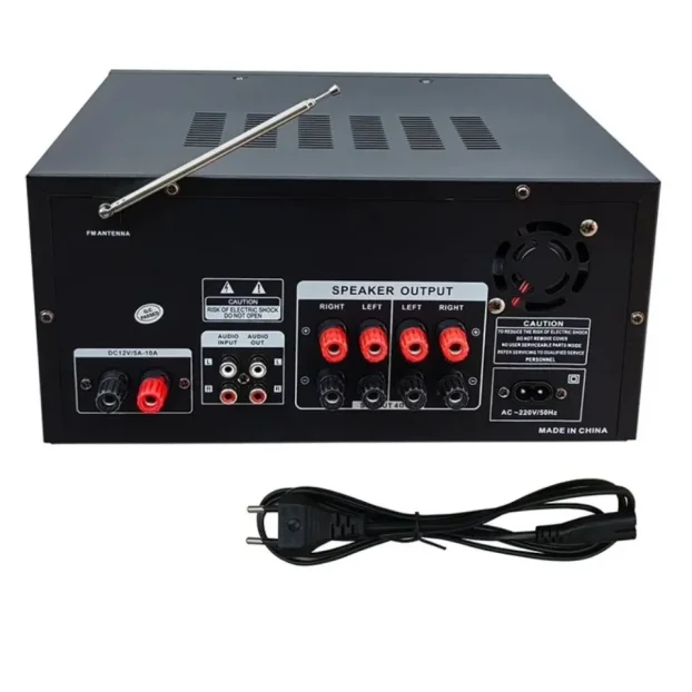🎶 Uvedite moćan i svestran zvuk u svoj dom i vozilo uz AV-999FM pojačalo/receiver — realna snaga 100W po kanalu, četiri kanala i kompletna podrška za moderne izvore audio signala. Savršeno za kućni bioskop, HiFi stereo konfiguracije i pojačavanje subwoofera. Spremno za odmah instalaciju i upotrebu! 🔊