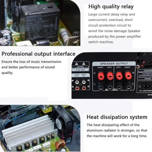 - ✅ Realna snaga 100W po kanalu – snažan i čist izlaz za svaki od četiri kanala