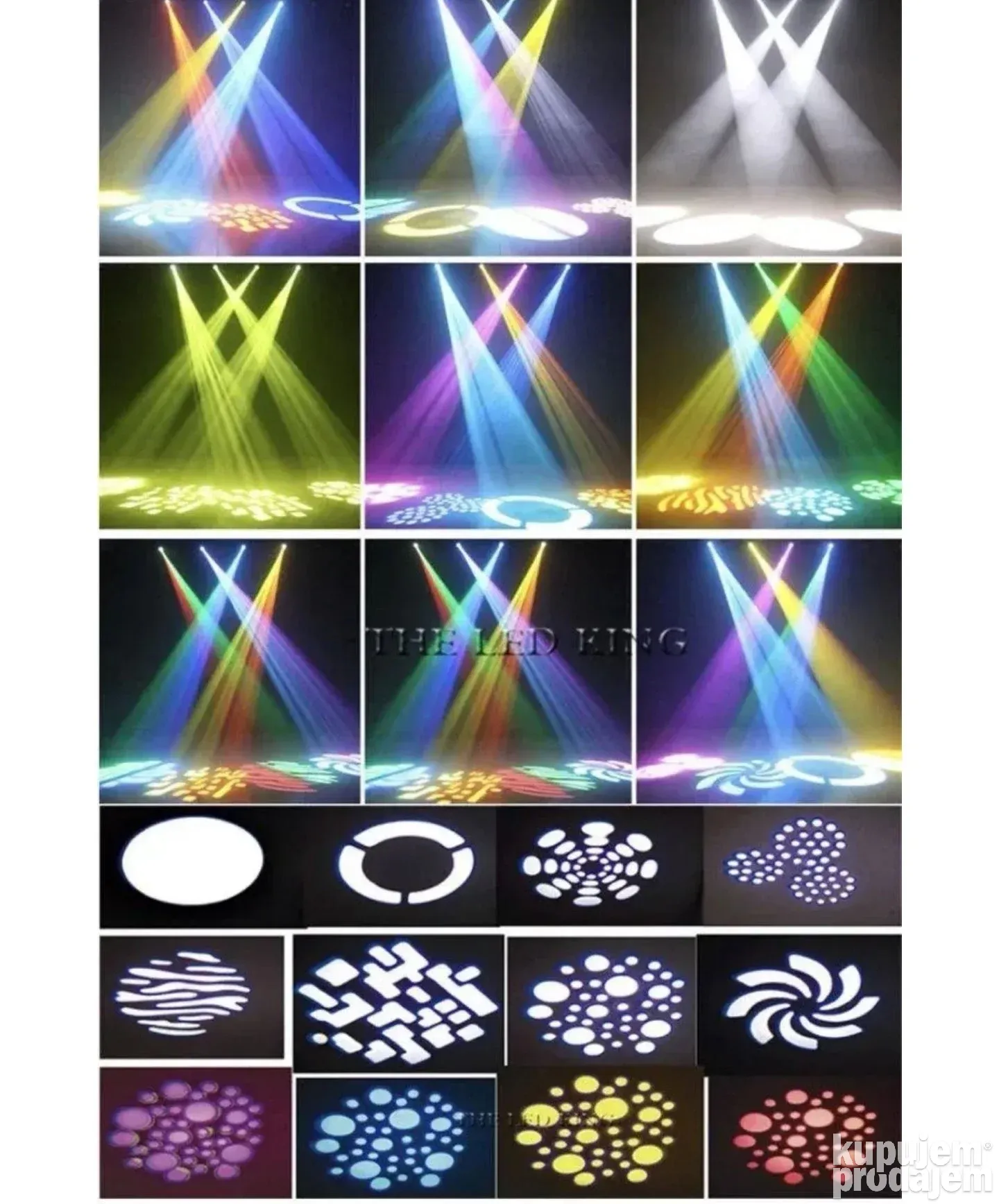 Roto glava se brzo okreće levo-desno i gore-dole, stvarajući pokretne snopove svetla koji ispunjavaju prostor. Ovakav efekat daje profesionalan izgled i pravi energičnu atmosferu.