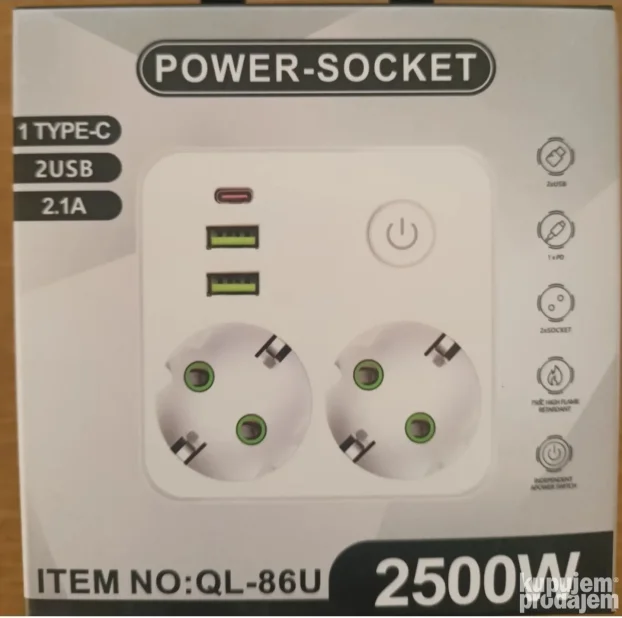 Power Socket 2500W — više utičnica i 3x USB u jednom!