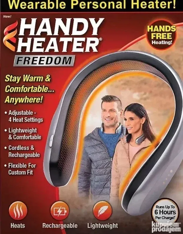 Prenosivi grejač za vrat pruža udobnu toplinu zahvaljujući fleksibilnoj grejnoj traci. Handy Heater je kompaktan, lagan i USB punjiv.