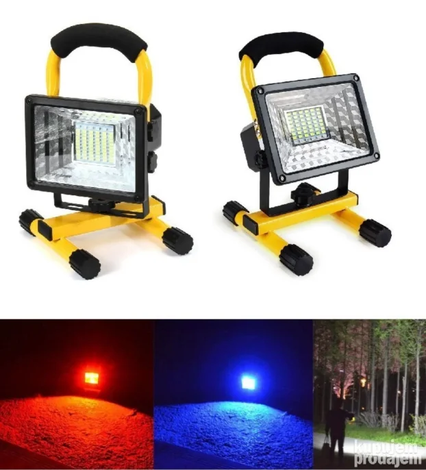 Prenosni Punjivi LED Reflektor 50W – Hladno Bela, Plava, Crvena