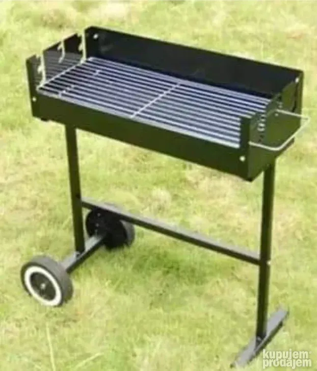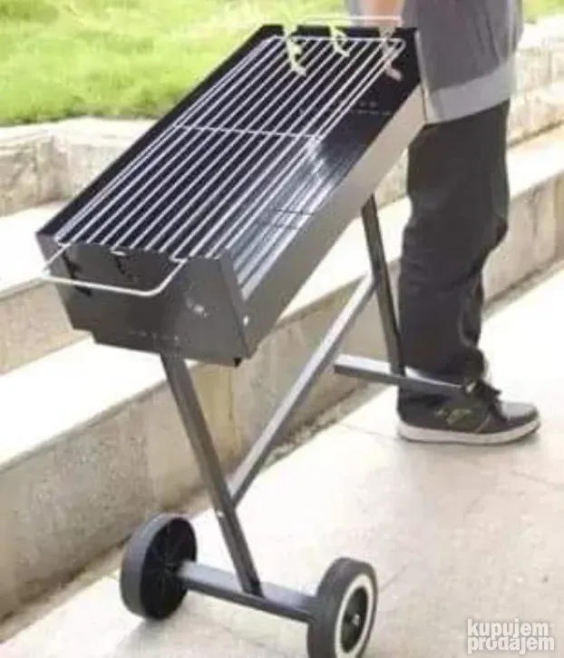 Kvalitetan prenosni roštilj na ćumur sa točkovima za lako premeštanje.