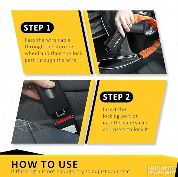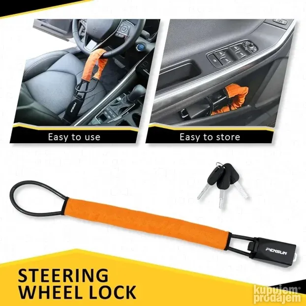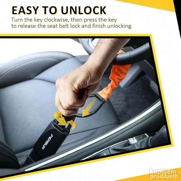 Ovaj pribor štiti vaš automobil od krađe čvrstom strukturom i jednostavnom upotrebom. Zaključava volan i utičnicu za sigurnosni pojas, čineći auto sigurnim.