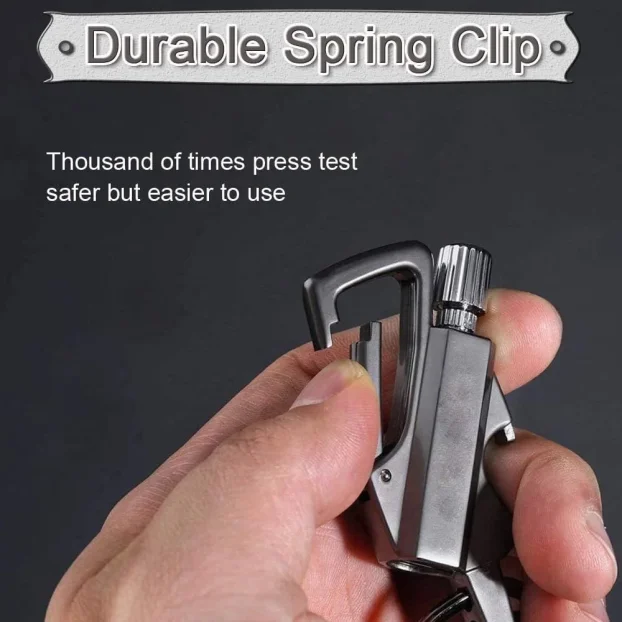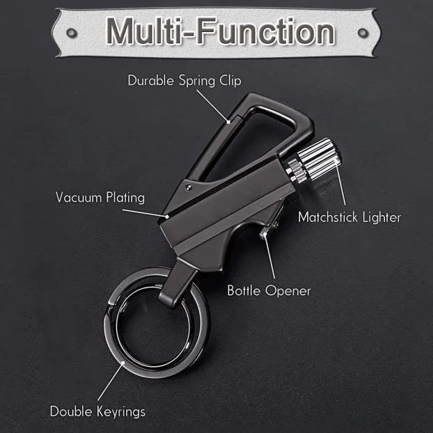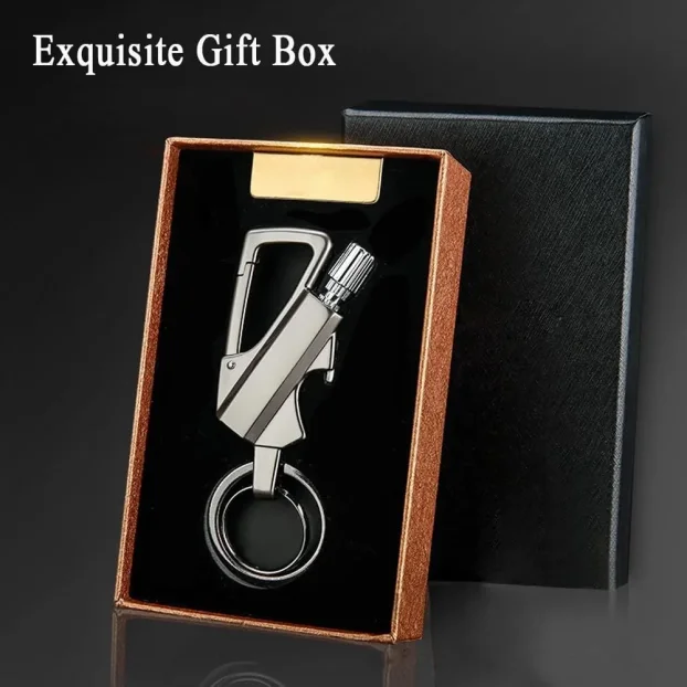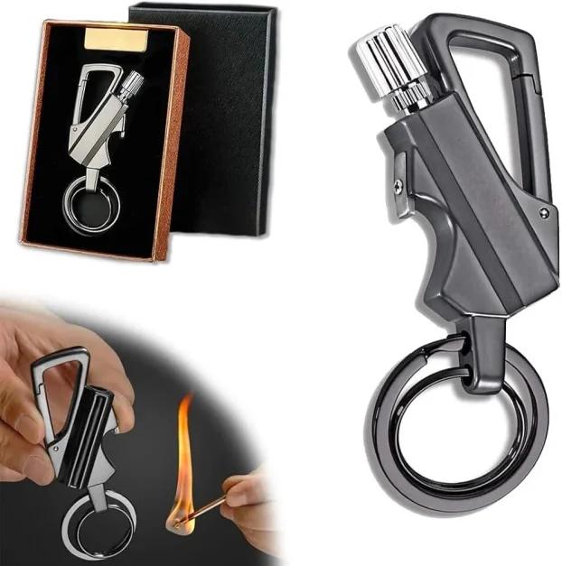 Tražite praktičan i robustan dodatak koji uvek može da vam pomogne? Predstavljamo multifunkcionalni metalni privezak za ključeve sa kremenskim starterom, otvaračem za flaše i punjivim kerozin upaljačem — savršen saputnik za avanture, kampovanje ili hitne situacije. Elegantan crni dizajn kombinuje stil i funkcionalnost, pa je odličan izbor i kao originalan poklon.