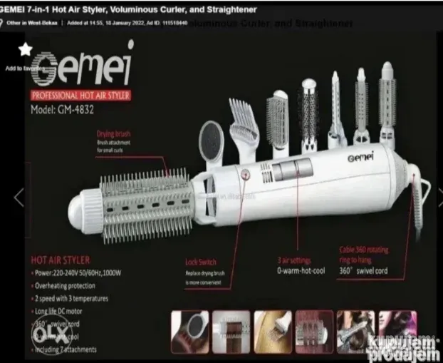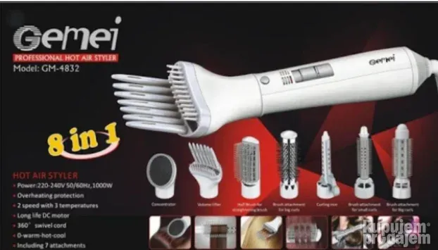 Profesionalna četka za kosu na topli vazduh Gemei GM-4832 omogućava sušenje i stilizovanje kose u jednom koraku. Namenjena je brzoj i jednostavnoj izradi frizura kod kuće. Pogodna je za različite tipove kose.
