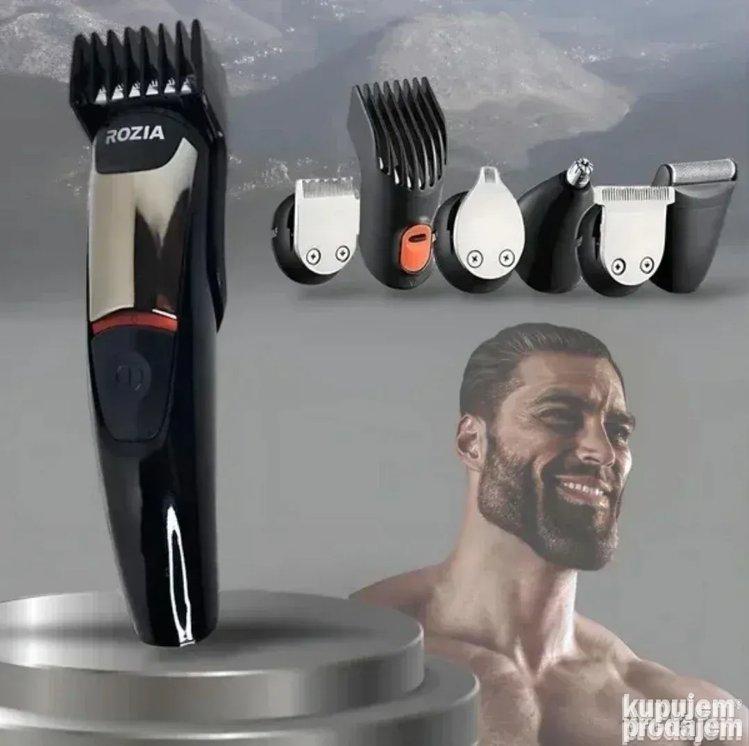 Profesionalna mašinica trimer 6 u 1 Rozia je praktičan komplet za celokupnu negu. Pogodan je za bradu, kosu, telo, nos i detaljno stilizovanje. Mašinica je kompaktna, ima udoban rukohvat i daje dobru kontrolu tokom šišanja.