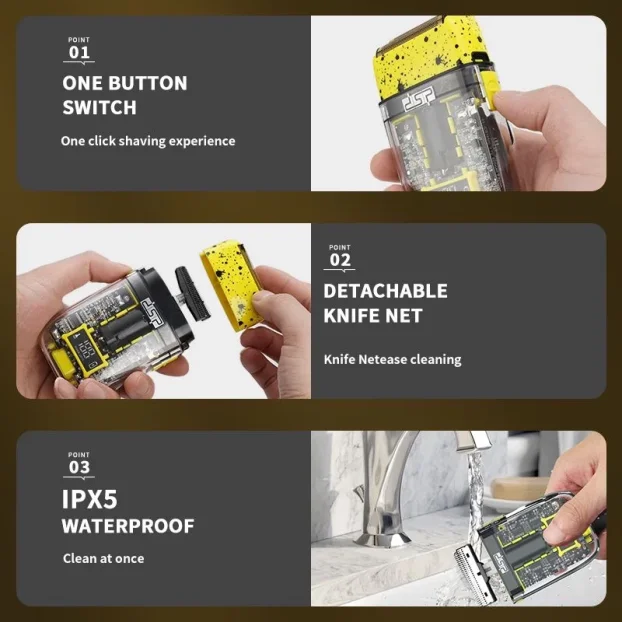 - 100% Vodootpornost (IPX5): Potpuna zaštita omogućava mokro brijanje i lako čišćenje pod mlazom vode, savršeno za upotrebu pod tušem.