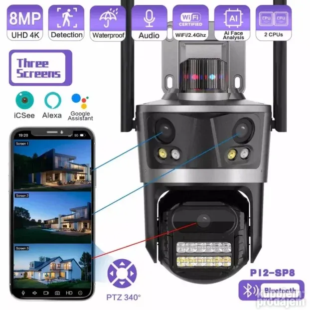 PTZ IP Wi-Fi kamera 3 sočiva 8MP