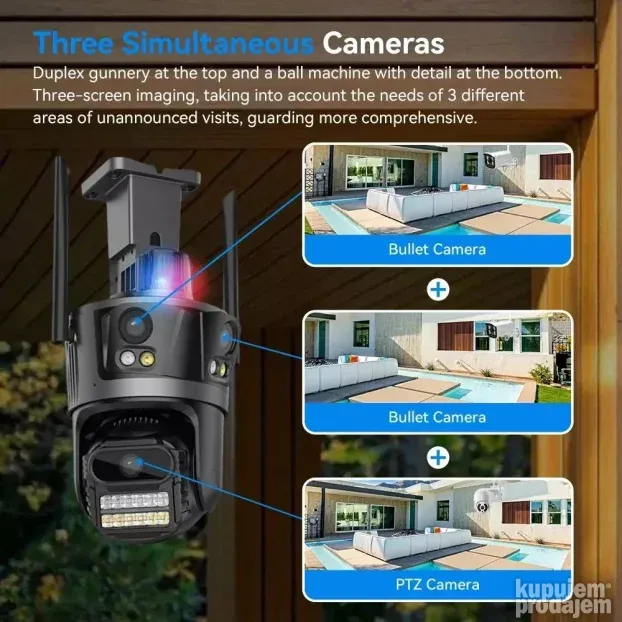 PTZ IP Wi-Fi Kamera sa 3 Sočiva, 10X Zoom i Alarmom