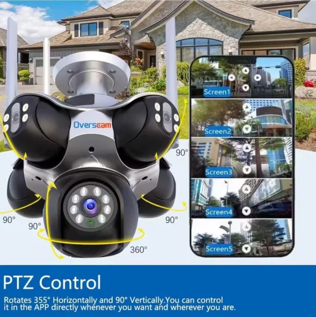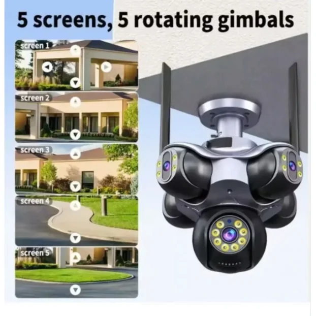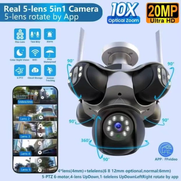 PTZ WiFi kamera sa 5 objektiva, 5 ekrana — 20MP Full HD, 10x digital zoom