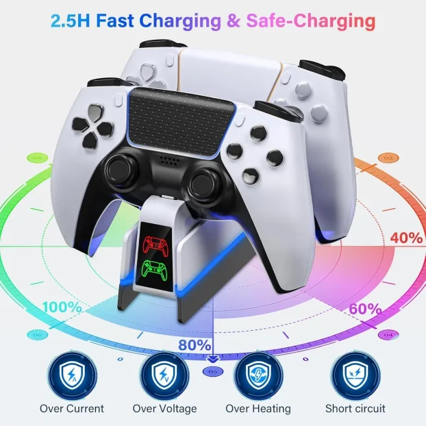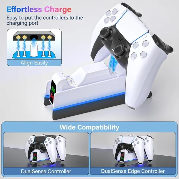 Ovaj punjač čuva vaše kontrolere uvek spremnim. Omogućava brže i jednostavnije punjenje dva kontrolera odjednom. Idealno za gejmere koji žele kontinuiranu igru bez prekida.