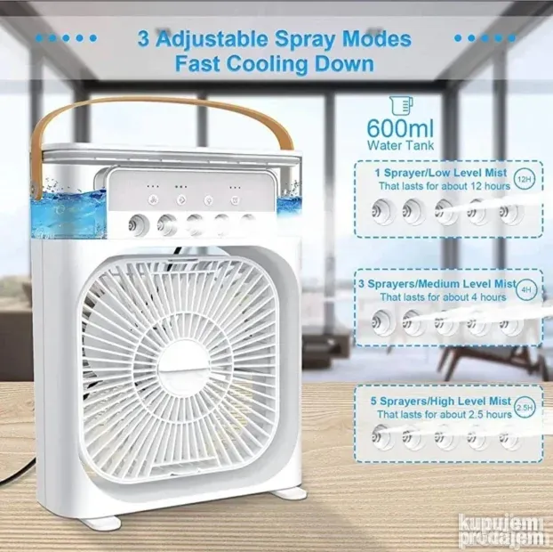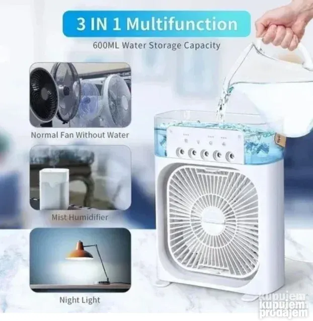 Ventilator + ovlaživač + LED svetlo u jednom uređaju.