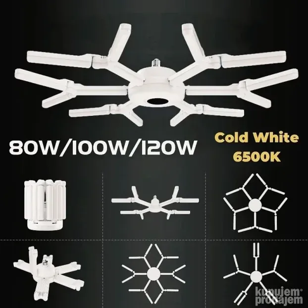 Ova LED sijalica u obliku pahulje daje 120W i 6500K dnevnog svetla. Ravnomerno osvetljava prostor, bez tamnih delova i blještavila. Deformabilni dizajn omogućava podešavanje snopa svetla. Idealna je za garaže, skladišta, radionice, kancelarije i potkrovlja. Štedi do 80% energije u odnosu na obične sijalice. Instalacija je jednostavna – grlo E27, bez alata.