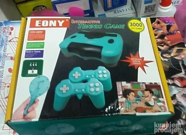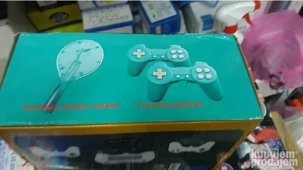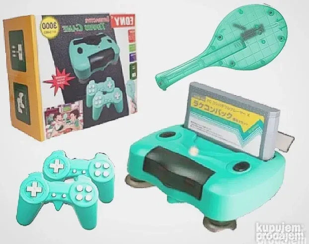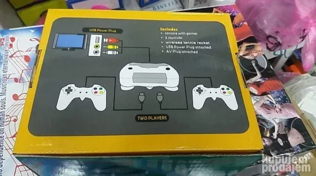 Povezuje se AV kablom direktno na TV. Paket uključuje 8-bit konzolu, dva džojstika, bežični reket, USB i AV priključak. Idealno za decu i ljubitelje retro igara.