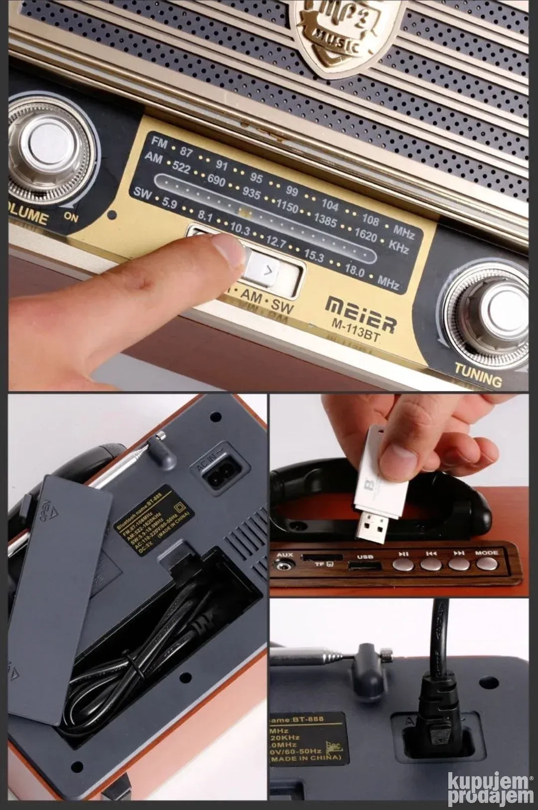 Retro radio model CMIK MK-111BT sa Bluetooth i USB podrškom