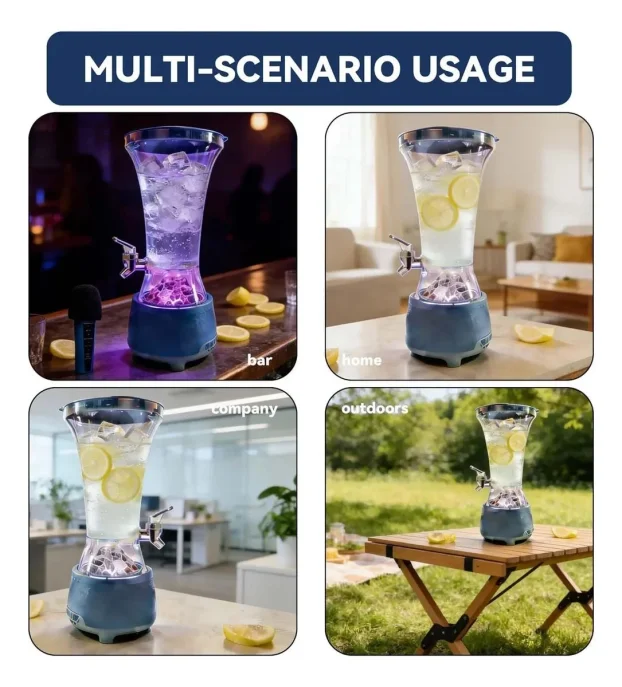 - ✅ 2-u-1 dizajn – dispenzer za piće i ugrađeni Bluetooth zvučnik za muziku bez dodatne opreme