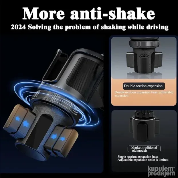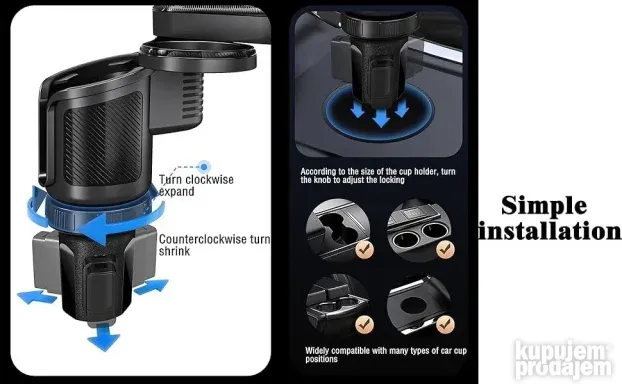 Držač se rotira 360°. Možete ga podesiti u savršen položaj i uštedeti prostor u vozilu.