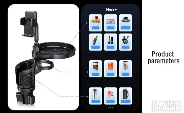 Praktičan i funkcionalan dodatak za svako vozilo. Omogućava da imate hranu, piće i telefon na dohvat ruke.