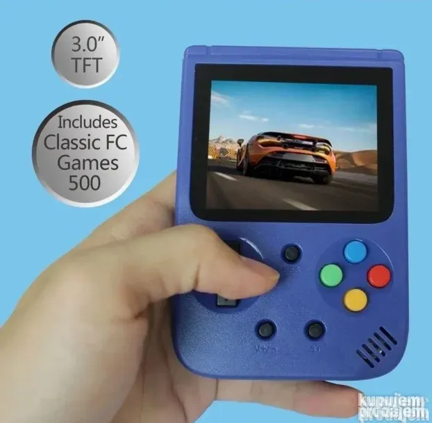 Ručna konzola sa 500 igara pruža sate zabave u retro stilu. Igre obuhvataju sport, trke, pucanje i avanturu. Kompaktna i prenosiva, idealna je za kuću ili putovanje. Ekran od 3 inča u boji omogućava jasan prikaz. AV kabl omogućava povezivanje na TV za još veće uživanje. Konzola dolazi sa punjivom baterijom i kablom za punjenje, spremna za korišćenje odmah po raspakovanju.