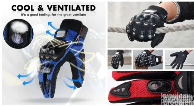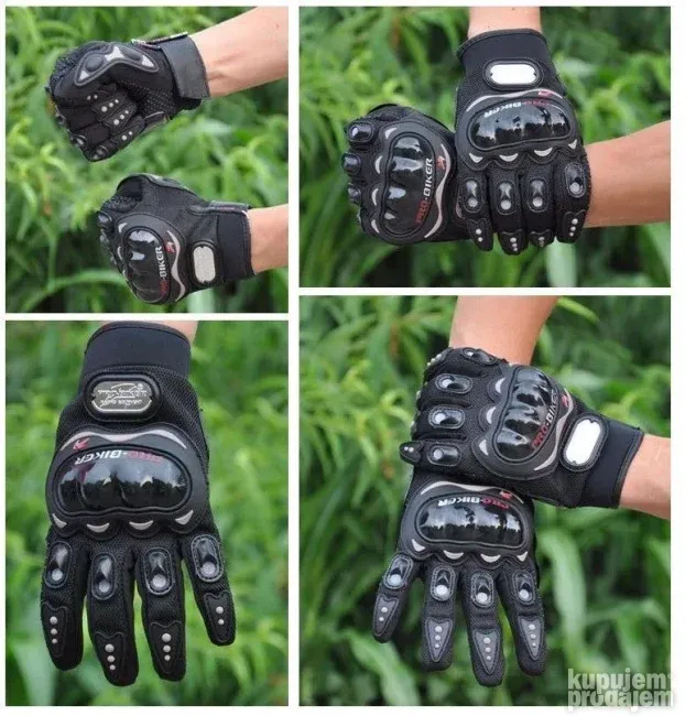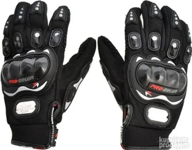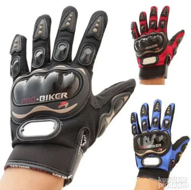 Moto rukavice „Pro Biker“ pružaju zaštitu i udobnost tokom vožnje. Napravljene su od izdržljivog platna i imaju ventilacione otvore na prstima. Protektori na zglobovima štite ruke pri padovima. Sitni klizači na dlanovima sprečavaju oštećenje rukavice i ruke. Dostupne su u veličinama L, XL, XXL i XXXL, pogodne za muškarce i žene.