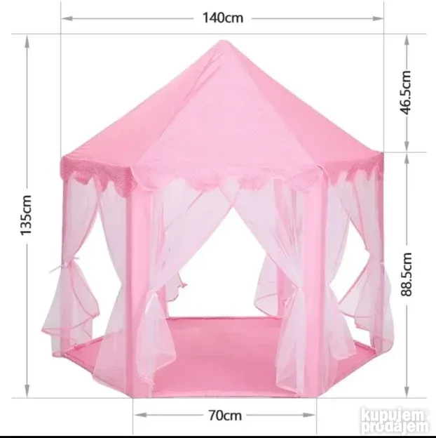 - Dimenzije šatora: Prečnik 105 cm, Visina 135 cm