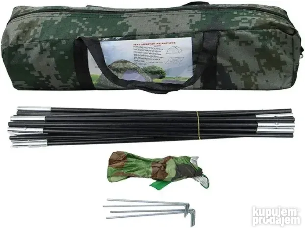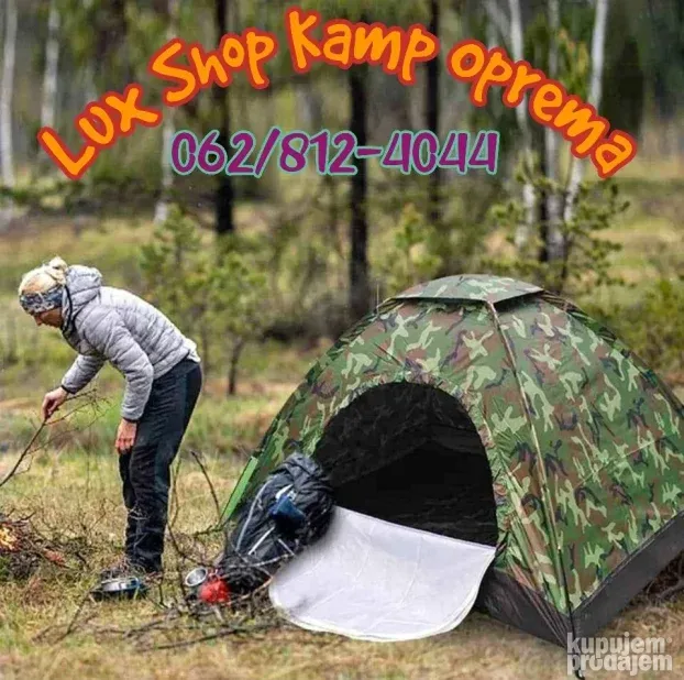Bez obzira da li vam treba šator za dvoje ili komplet za celu ekipu – u našoj ponudi su dostupne različite veličine i boje, uključujući i maskirne varijante. Šatori imaju integrisanu mrežicu koja štiti od insekata, dok kvalitetan materijal pruža zaštitu od vetra i kiše. ✅