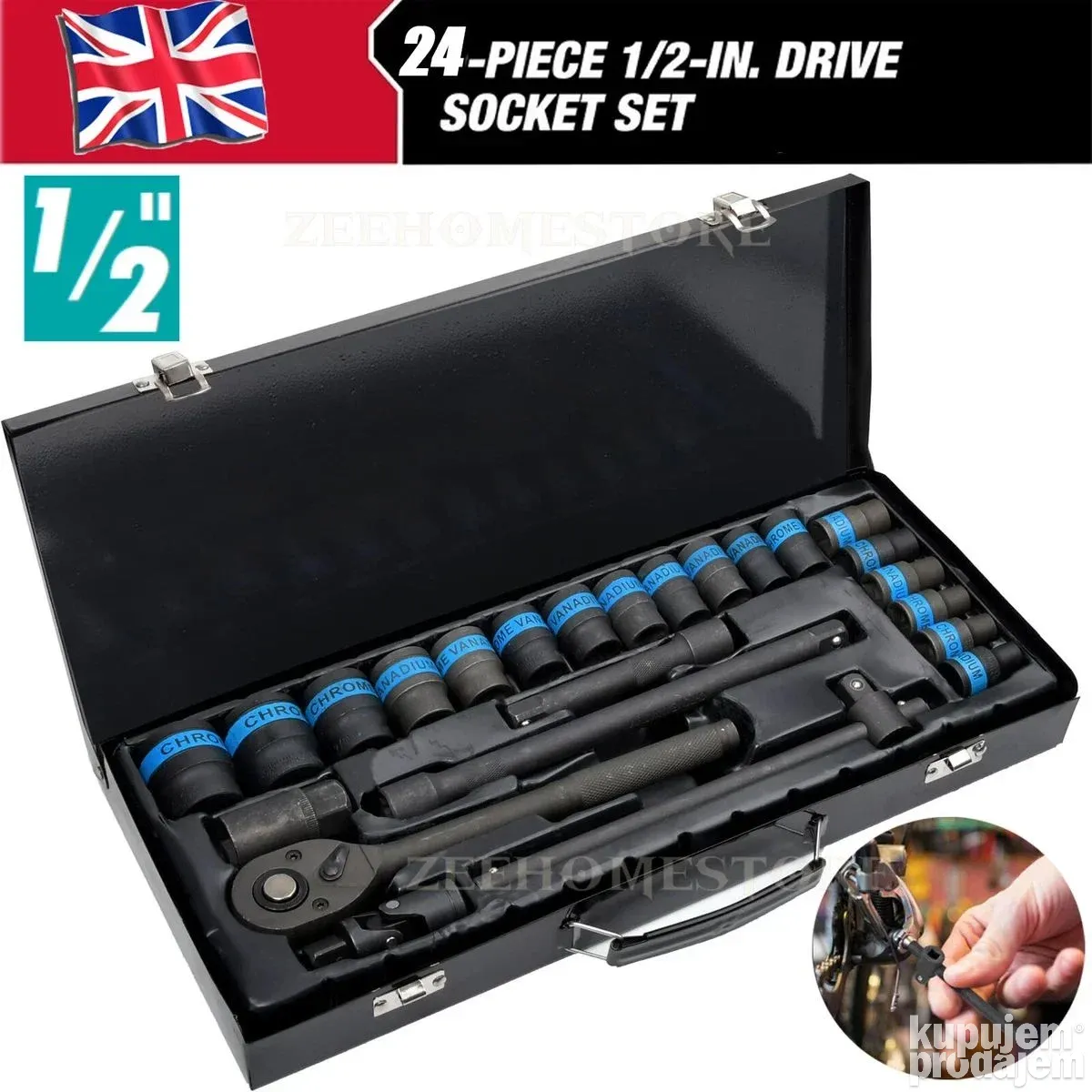 Set nasadnih ključeva 24 kom | Čegrtaljka 1/2″ profesionalni set