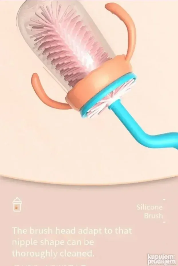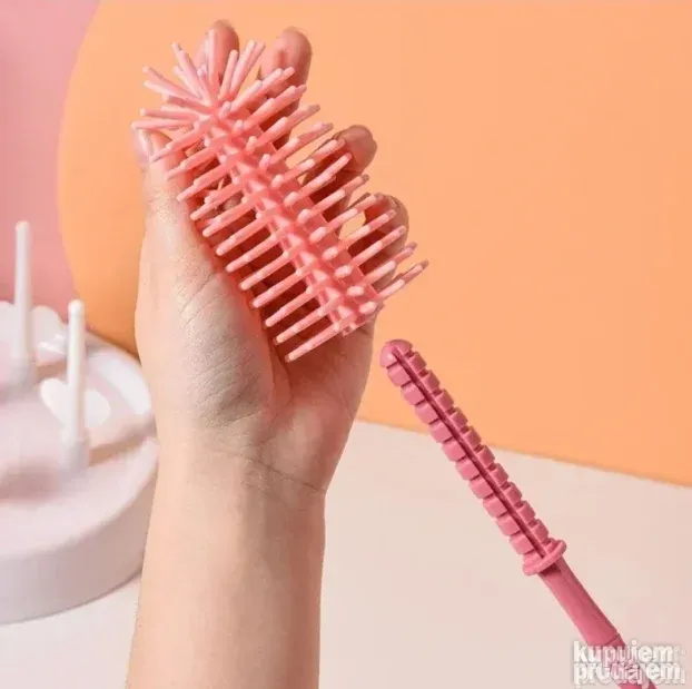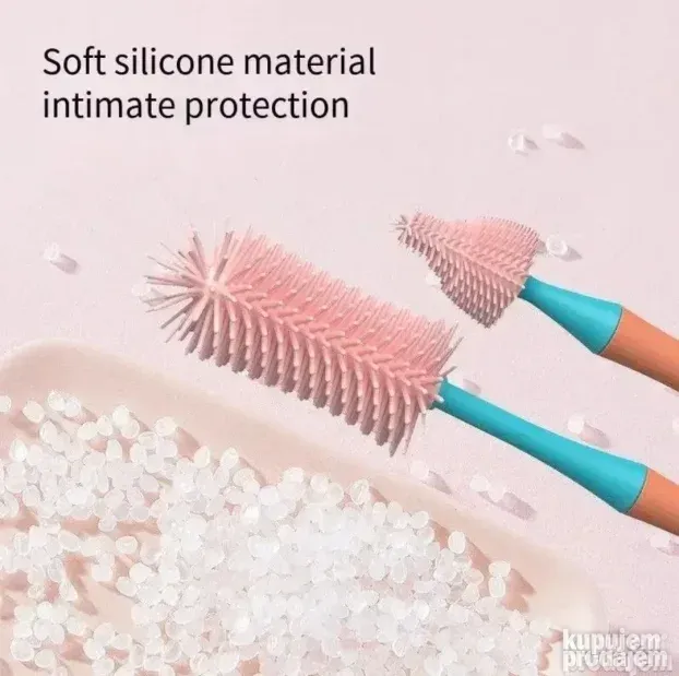 Set za čišćenje flašica za bebe omogućava jednostavno i efikasno čišćenje flašica, cucli i cevi za mleko. Napravljen je od silikonskog materijala za hranu, bez BPA, što ga čini sigurnim za svakodnevnu upotrebu. Set uključuje tri vrste četkica: glavnu za flašice, manju za cuclu i tanku četkicu za cevi, tako da je pogodan za različite materijale – staklo, PPSU, PP, silikon ili nerđajući čelik.