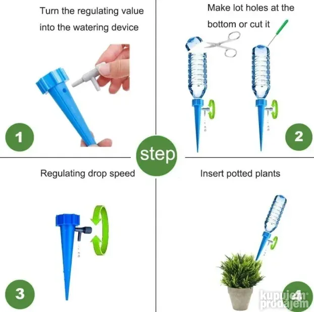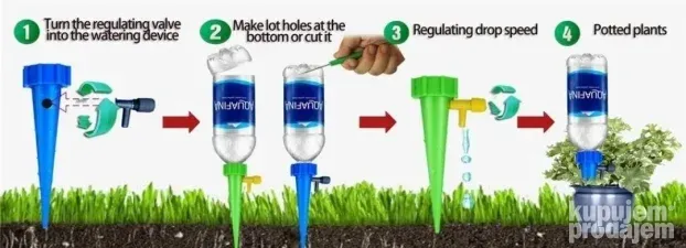 Protok vode se reguliše kapaljkom za svaku biljku.
