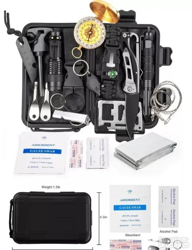 Ovaj sveobuhvatni set za preživljavanje je idealan saputnik za sve ljubitelje prirode, kampovanja i avanture. Sa pažljivo odabranim alatima, pruža sigurnost i spremnost za razne nepredviđene situacije, bilo da ste u divljini ili ga držite u automobilu.