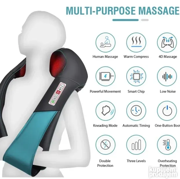 Šijacu masažer za vrat, ramena i leđa predstavlja najbolji model u klasi, izrađen od kvalitetnijih materijala i sa unapređenim funkcijama za dubinsko opuštanje mišića. Namenjen je svakodnevnoj upotrebi kod kuće, u kancelariji ili u automobilu.