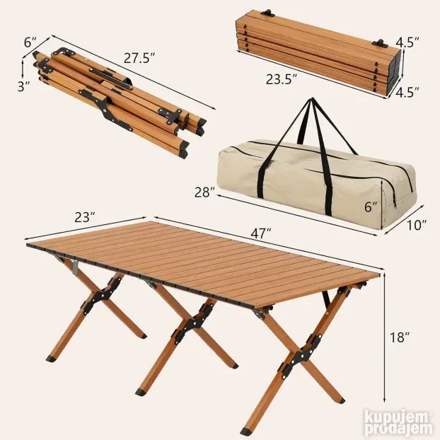 Sklopivi sto za kampovanje 120cm – Prenosivi sto za izlet