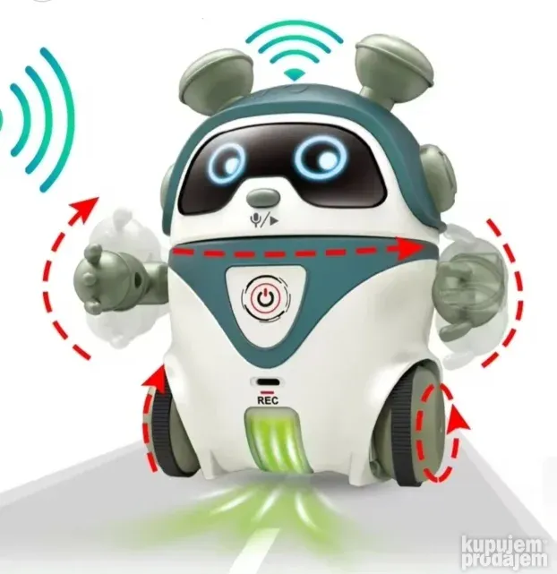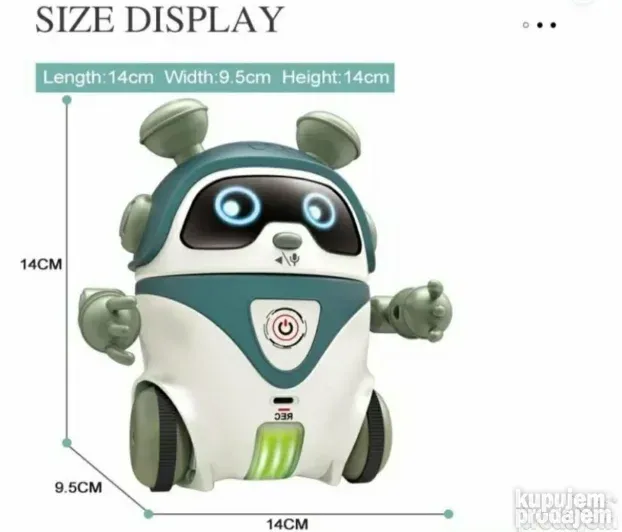 Pritiskom na taster (nos robota) aktivira se plesni mod, muzički režim ili pričanje priča. Idealan je za razvoj dečije kreativnosti i motoričkih sposobnosti, a njegova kompaktna veličina (19×19 cm) omogućava lako rukovanje i transport.