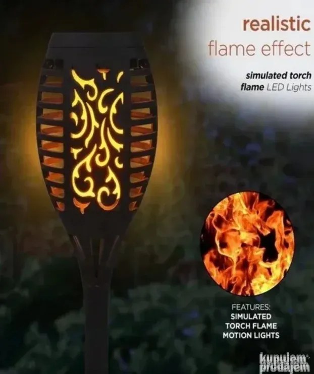 Vodootporne i izdržljive, solarne baklje rade tokom cele godine, bez obzira na vremenske uslove. Stvaraju svetlosni efekat plamena u dvorištu i bašti.