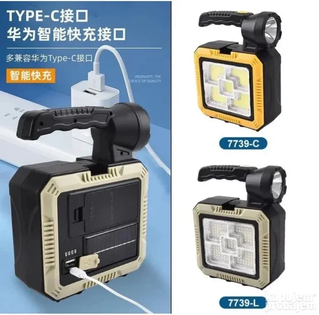 - U pakovanju: Solarna lampa, 16 sitnih alata, 2 x punjive baterije 18650, 1 x Type-C kabl