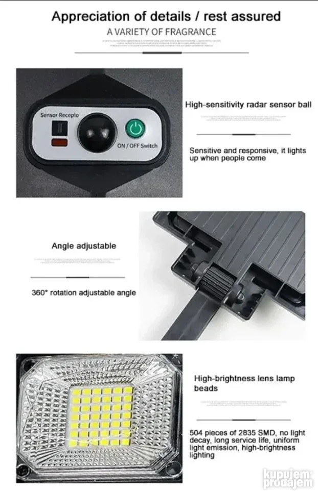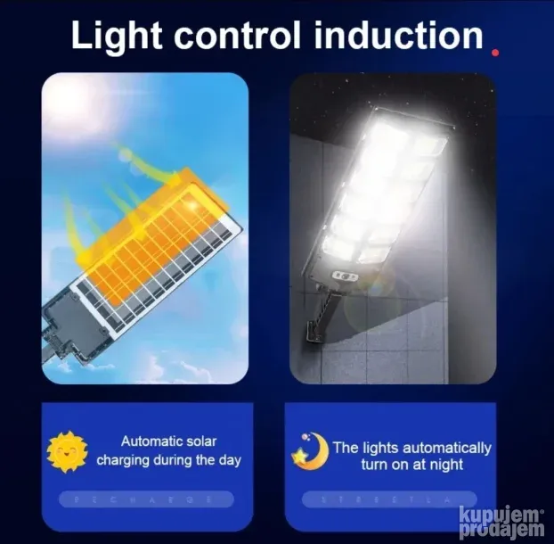 Solarni LED reflektor od 600W sa senzorom pokreta i daljinskim upravljačem pruža snažno osvetljenje spoljnog prostora. Punjenje se vrši preko sunčeve svetlosti, a reflektor radi i u oblačnim danima. PIR senzor automatski uključuje svetlo kada detektuje kretanje. Ugrađeni tajmer omogućava jednostavno podešavanje vremena rada. Laka montaža bez kablova čini reflektor idealnim za bašte, bazene, dvorišta, prilaze, stepenice i spoljne zidove.