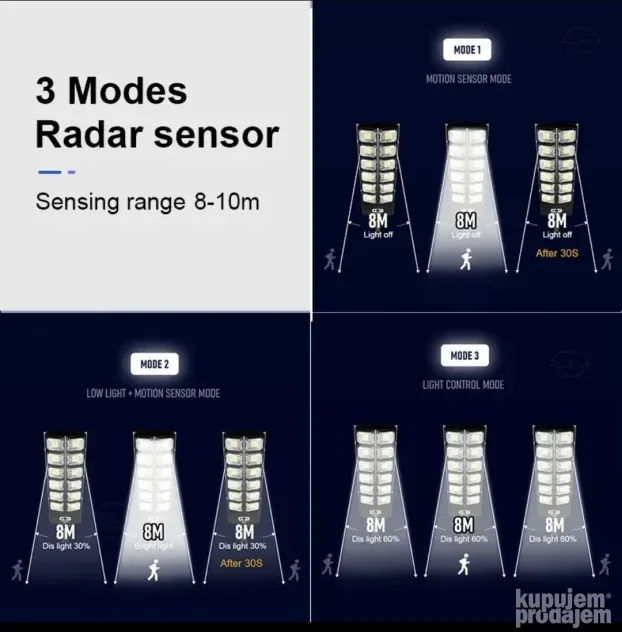 Efikasno i sigurno osvetljenje spoljnog prostora. PIR senzor pokreta i solarno napajanje omogućavaju praktičnu i dugotrajnu upotrebu. Idealan je za bašte, dvorišta, prilaze i spoljne zidove. Jednostavno upravljanje daljinskim čini upotrebu lakom i prijatnom.