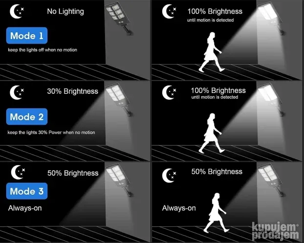 ⚡ Tri režima osvetljenja – prilagodite po potrebi