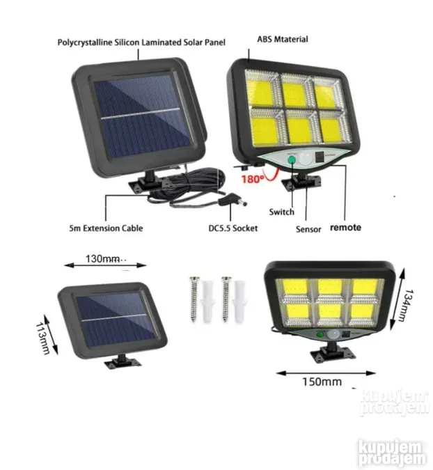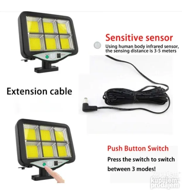 ⚡️ Snaga 40W sa 6 COB polja i ugrađenim senzorom pokreta.