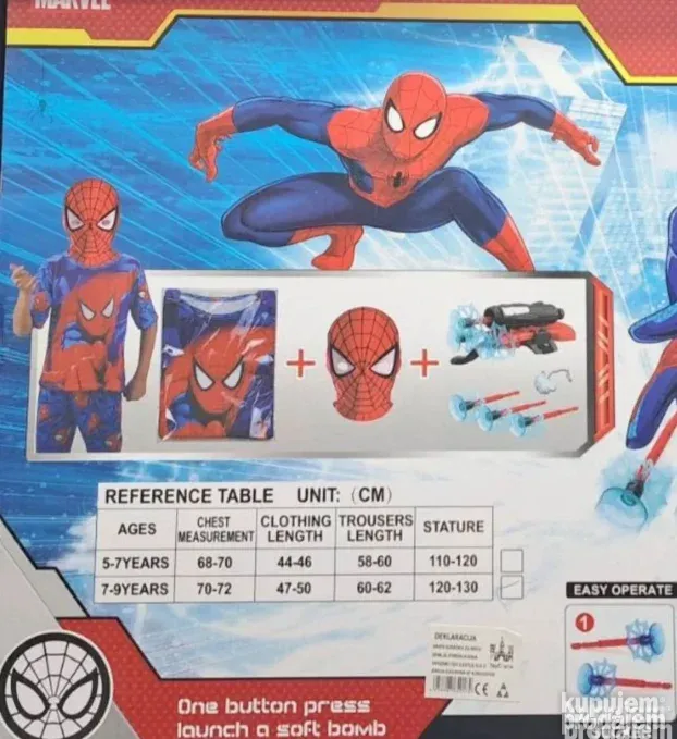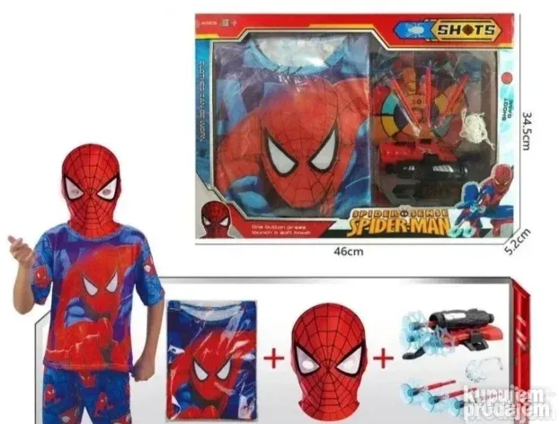 - Sadržaj seta: Spajdermen majica (odelo), Spajdermen maska, ispaljivač metaka.