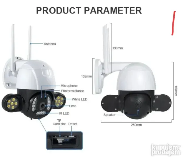 Funkcije: PTZ rotacija, detekcija pokreta, alarm, night vision