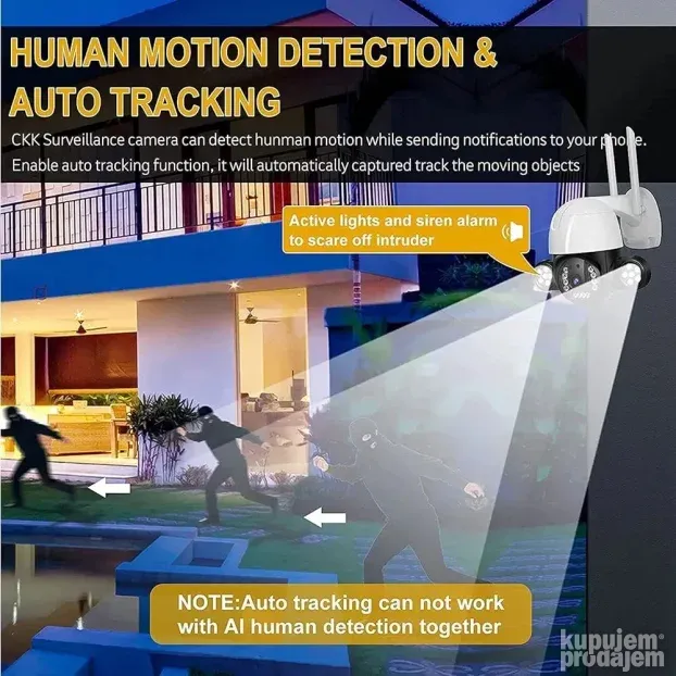 Naša kamera pruža pouzdano i jasno nadgledanje. Idealna je za kuću, poslovne prostore ili dvorište. Integrisani reflektori i noćni vid omogućavaju bezbednost i u mraku. Dvosmerni zvuk i detekcija pokreta pružaju dodatni nivo kontrole i sigurnosti.