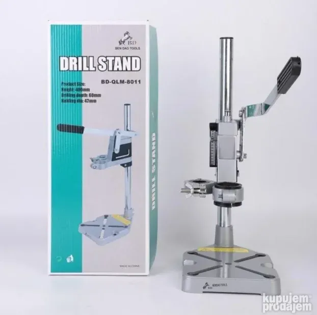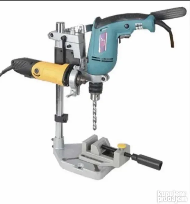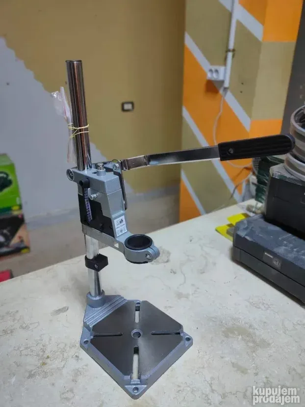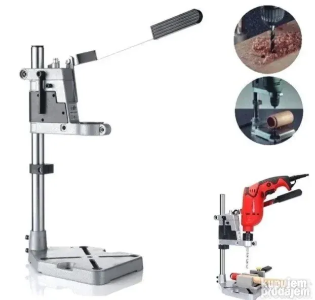 Stalak za bušilicu pruža stabilnost i tačnost pri radu. Pogodan je za radionice, garaže i kućnu upotrebu.