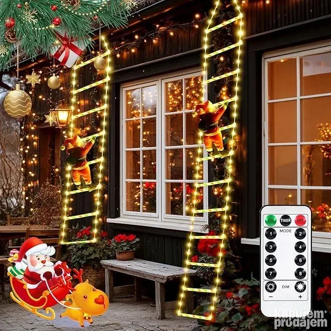 Svetleće merdevine sa Deda Mrazom su idealan praznični ukras za svaki dom, lokal ili izlog! Ovaj topli i veseli dekor pretvara svaki prostor u pravi božićni kutak. Deda Mraz koji se “penje” uz merdevine, uz nežno svetlucanje LED lampica, donosi magiju praznika i budi radost kod dece i odraslih.