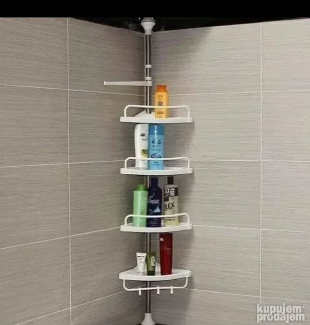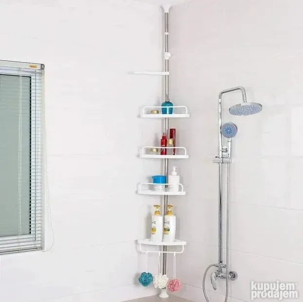 Ugaona polica za kupatilo je idealno rešenje za organizaciju prostora. Podesiva je po visini od 100cm do 260cm, tako da je možete prilagoditi vašim potrebama. Montaža je jednostavna, a polica se stabilno fiksira lepljivim delovima na plafon i kadu ili zid.