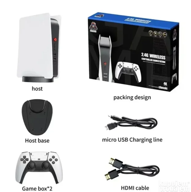 - ✅ Bežični kontroleri (2.4G) – Dva kontrolera sa USB prijemnikom koji se povezuje na konzolu.